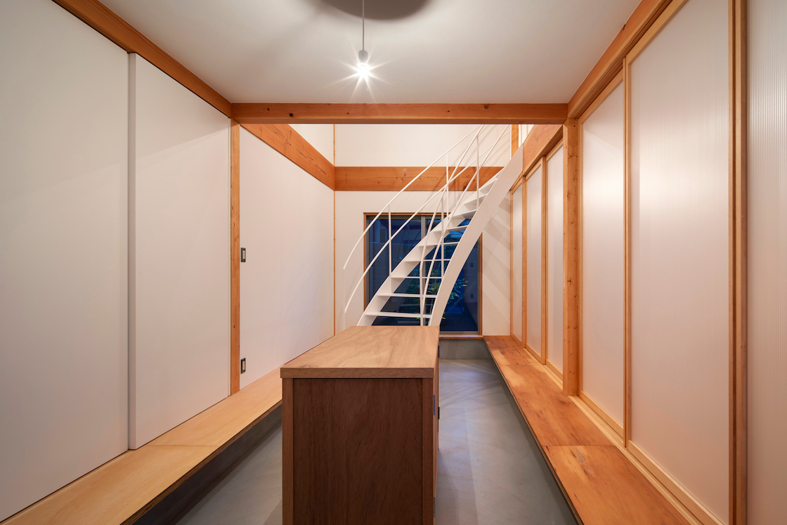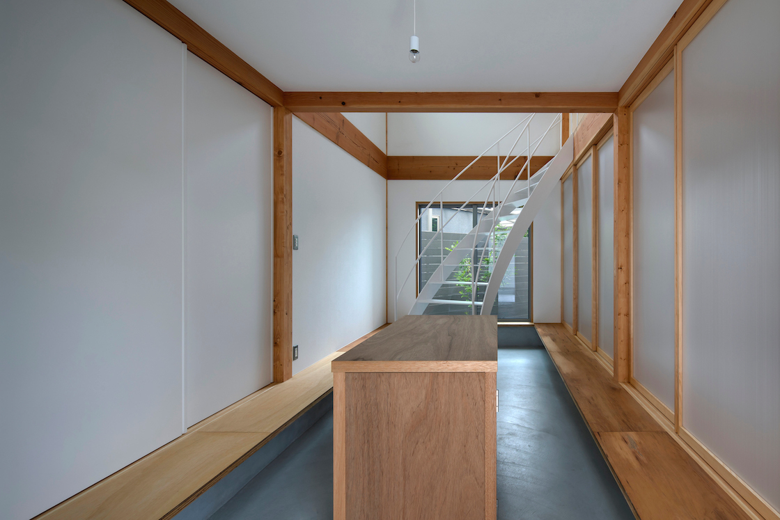 地域への家開きの観点において、閉じたい密集地の中、昔ながらの地域コミュニティを拒絶しない在り方を探り、心理的効果も含め周囲に対して適度に隙間や距離感を持つ住まいを目指した。