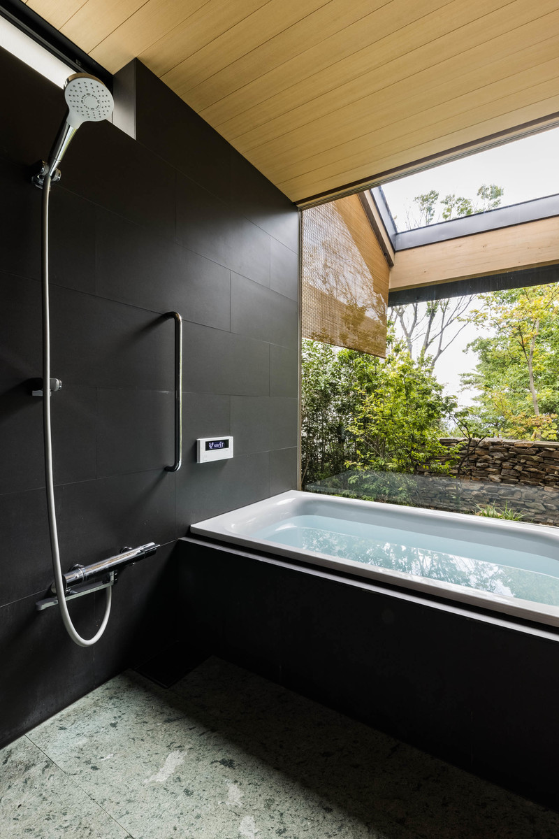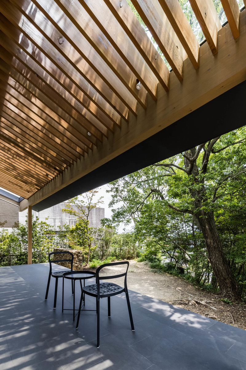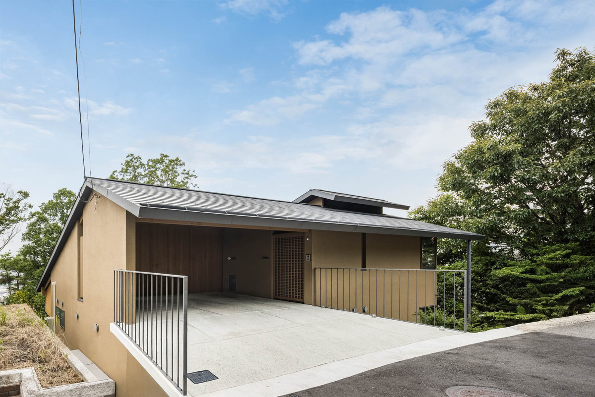 敷地は兵庫県宝塚市の山手に位置する、閑静な住宅地にあります。敷地の大部分は傾斜地となっており、鬱蒼と茂る豊かな緑に包まれ、樹々の間からは街並みを遠望することができます。