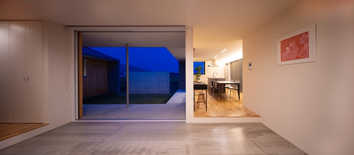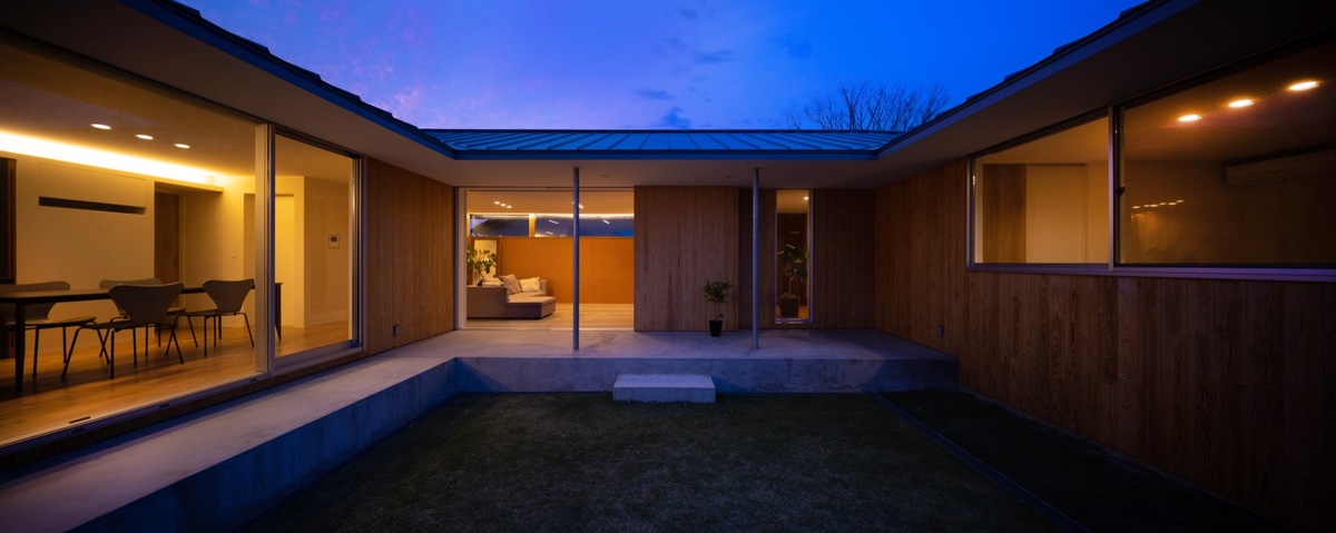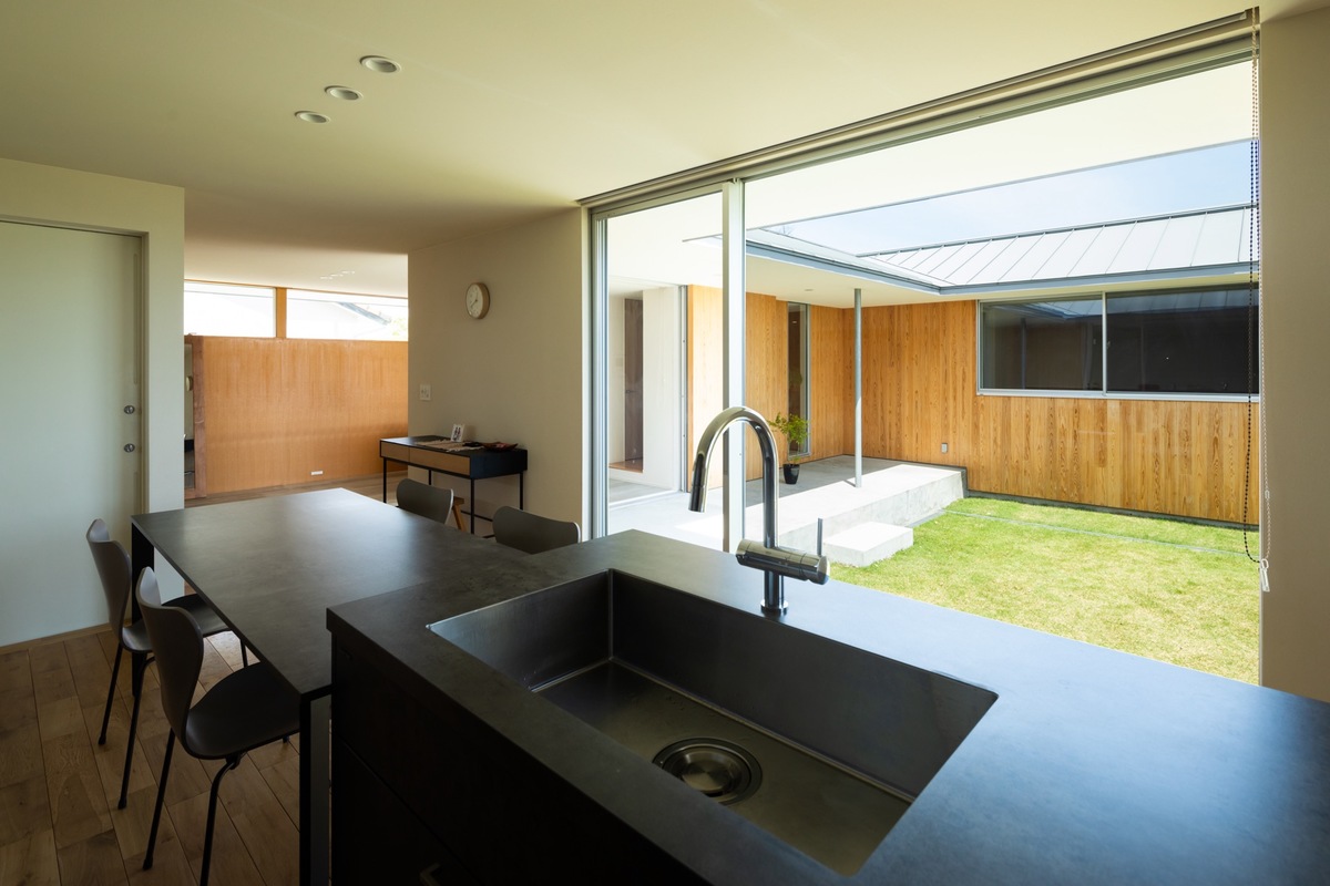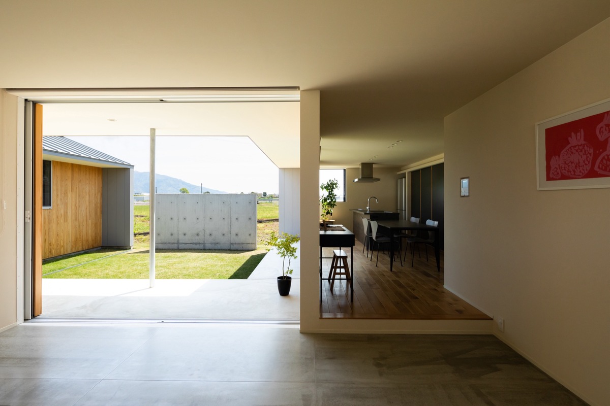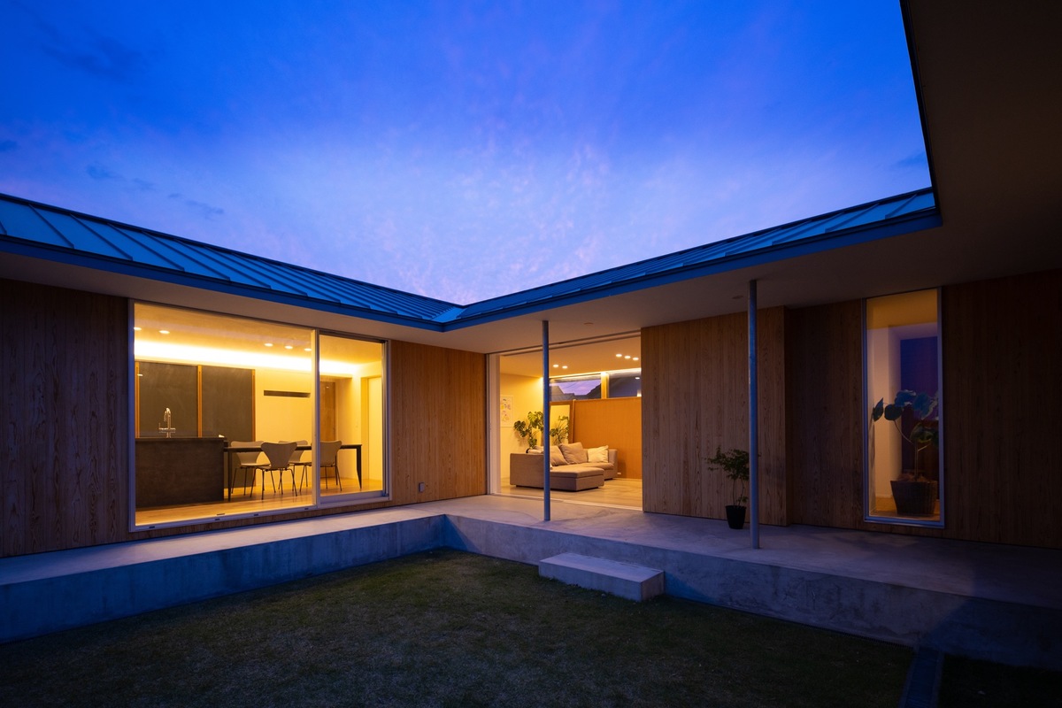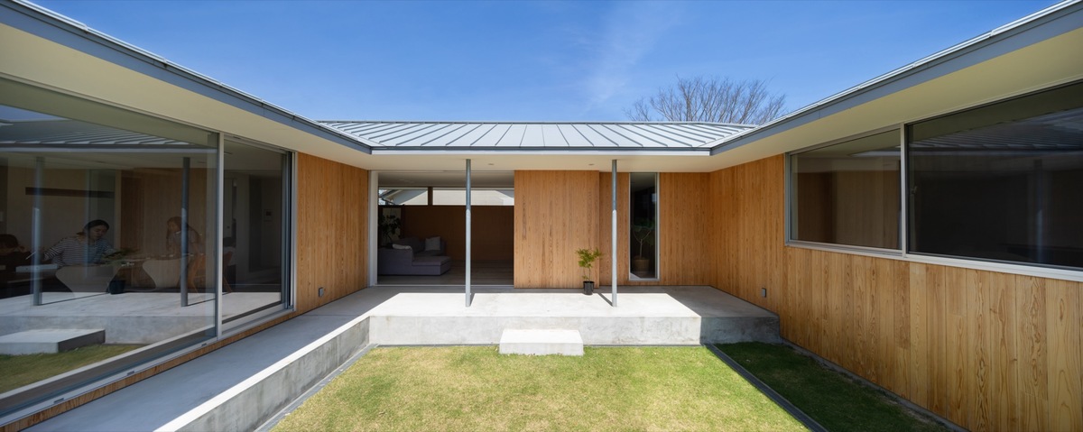 長閑な田園風景を望み、中庭を囲んだ「コの字型」プランの平家です。