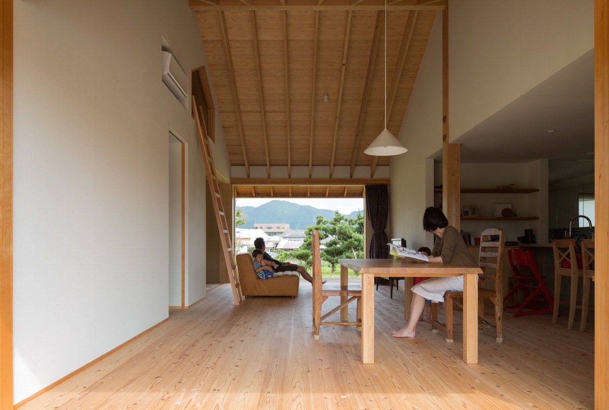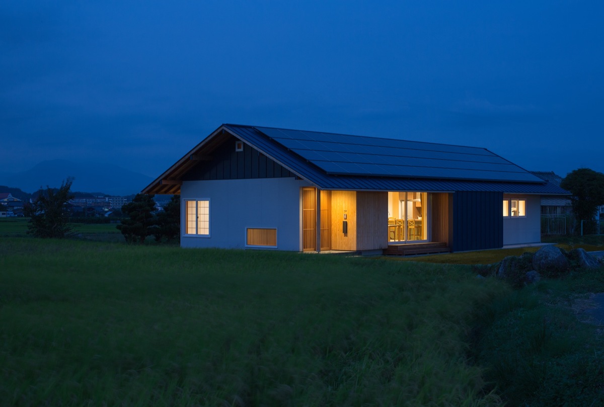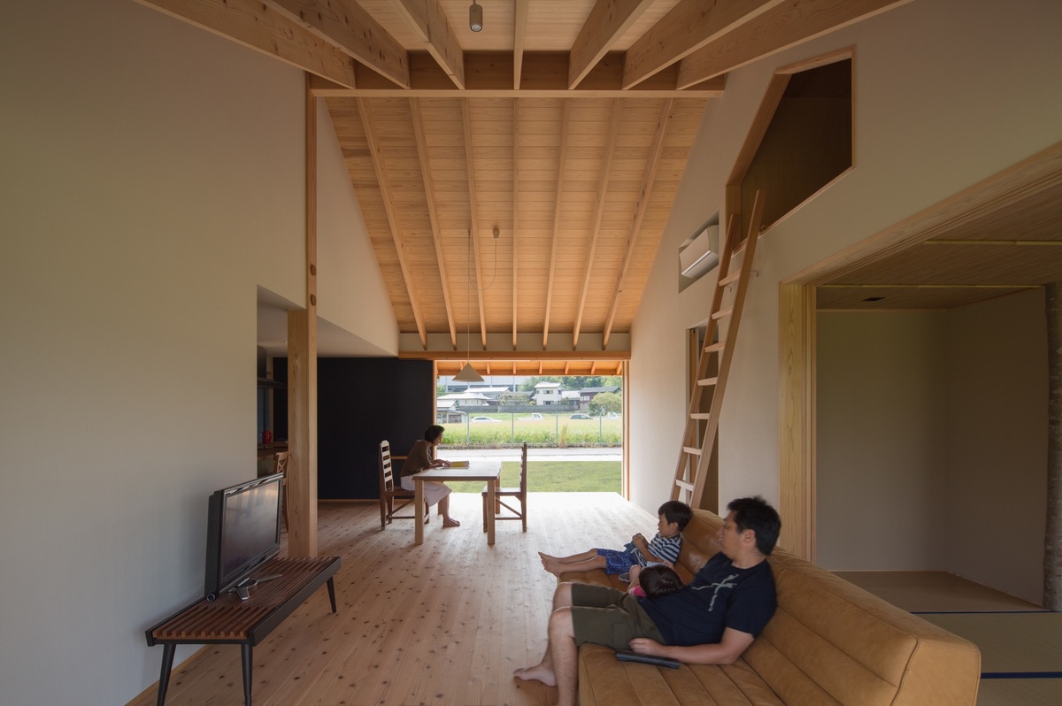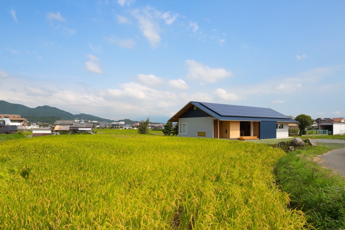 長閑な田園風景に建つ、切り妻屋根を持つシンプルな平家です。