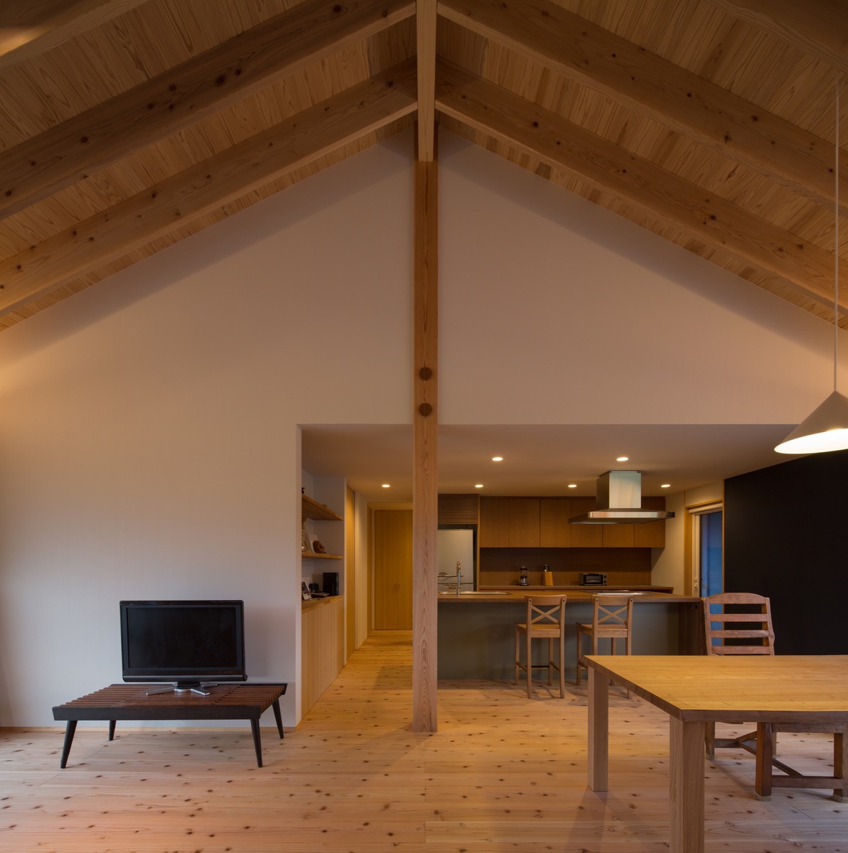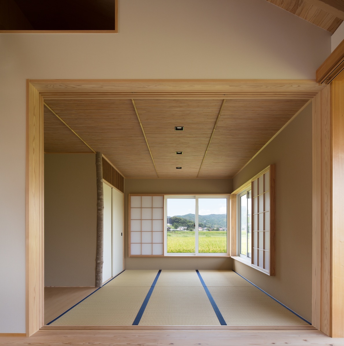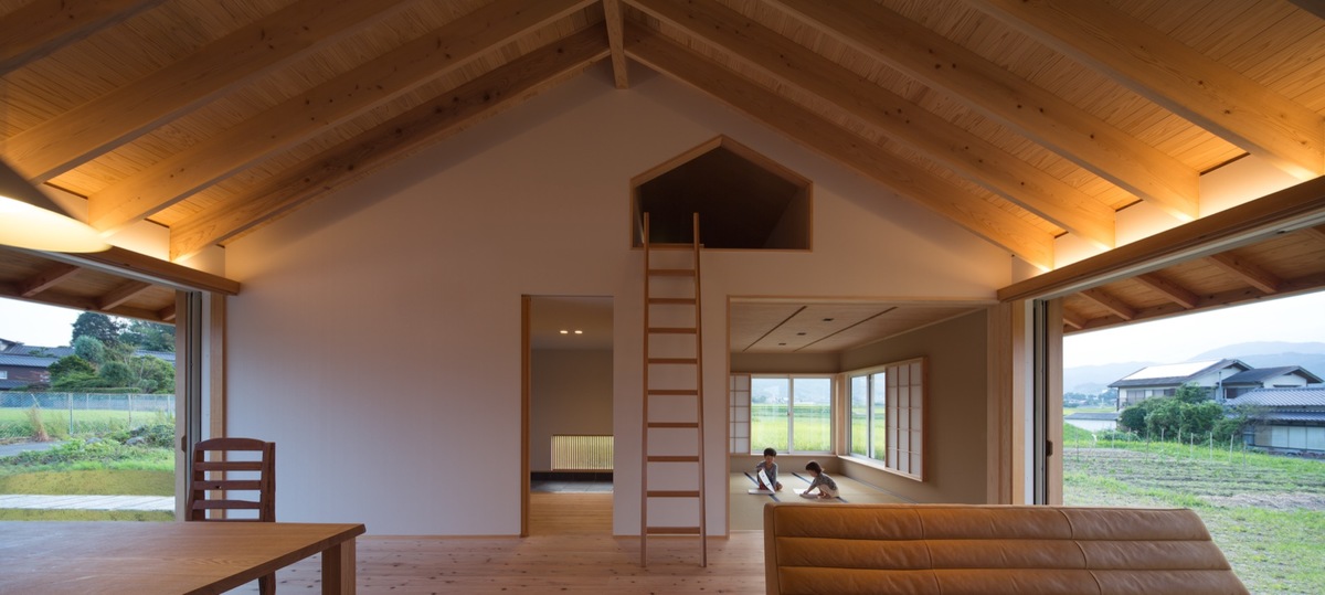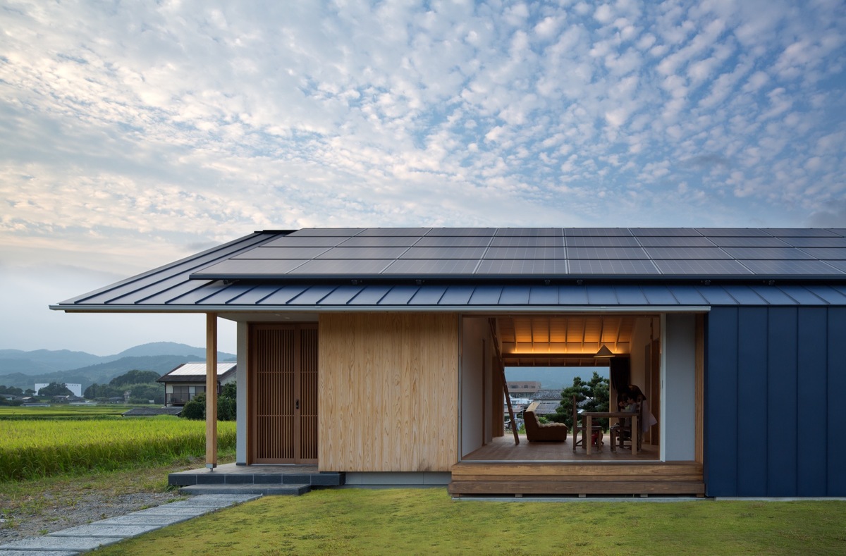長閑な田園風景に建つ、切り妻屋根を持つシンプルな平家です。