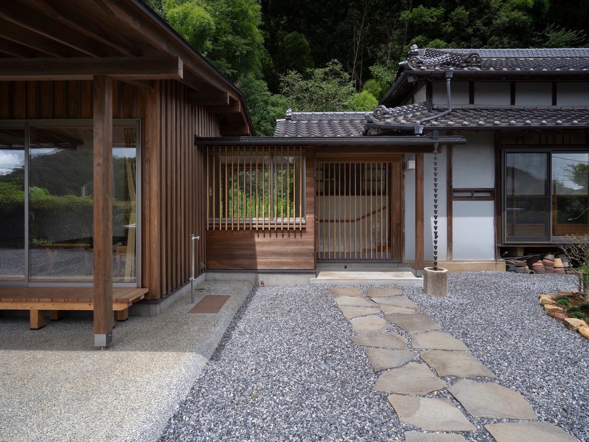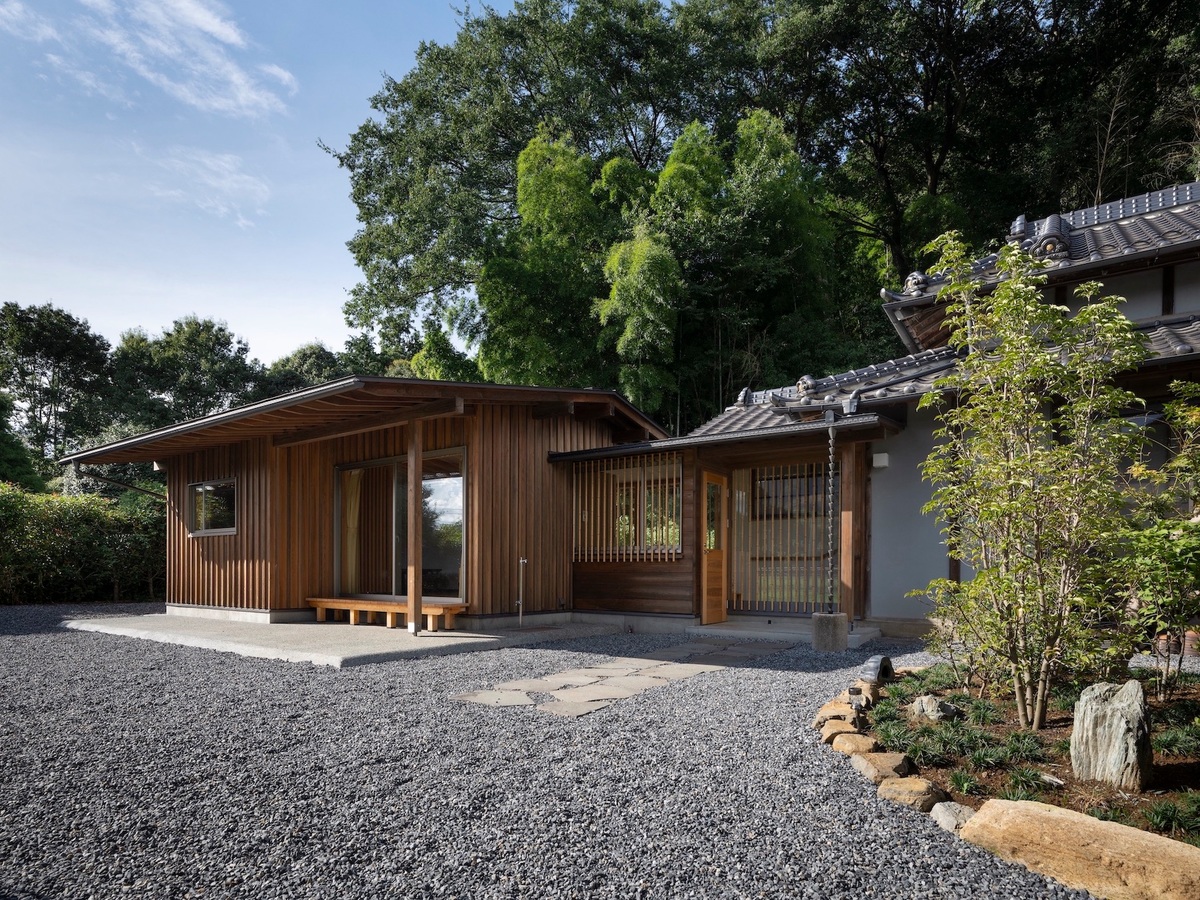山のふもとに建つ築七十年以上の母屋に、小さな離れを増築したプロジェクトです