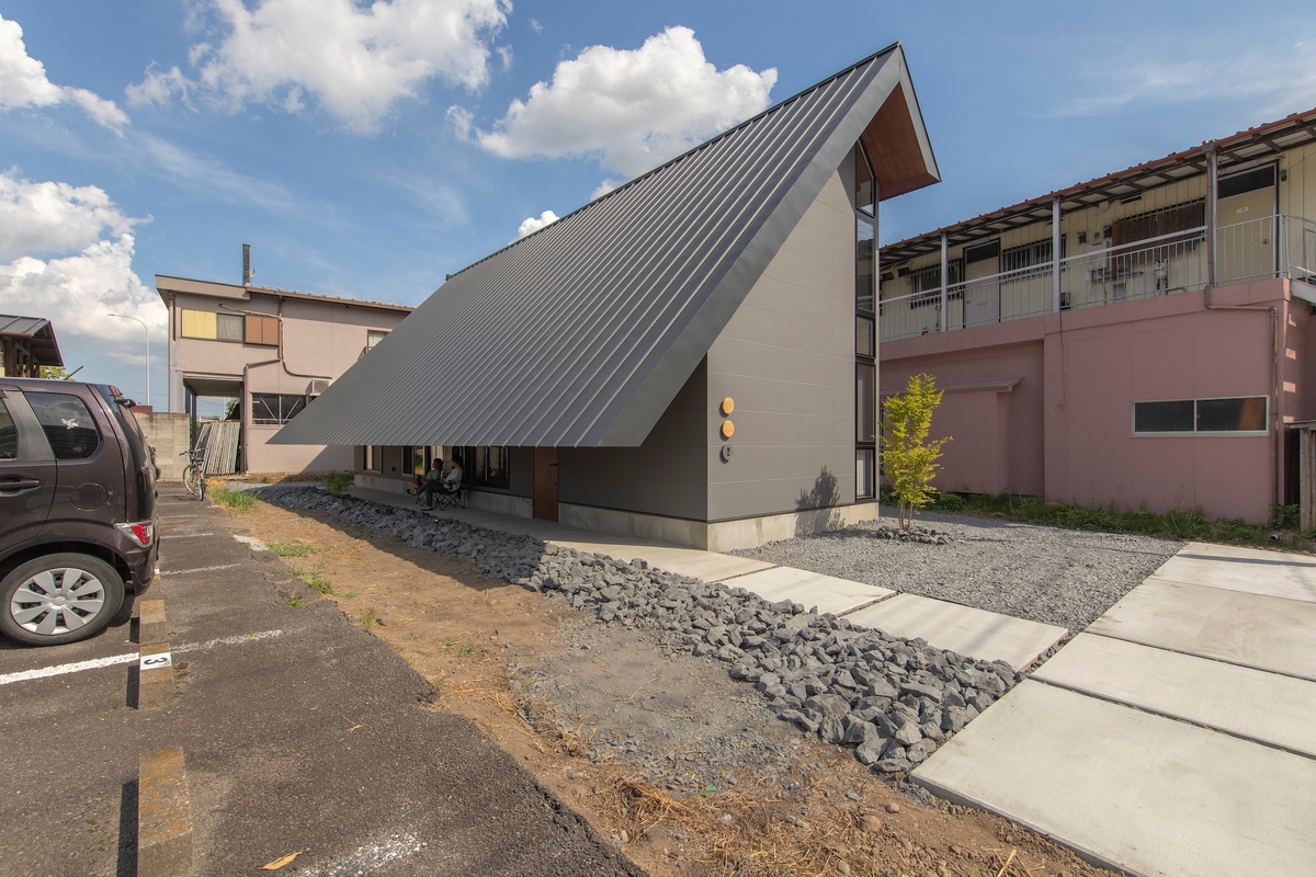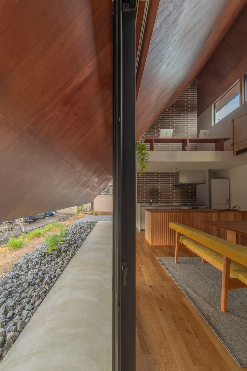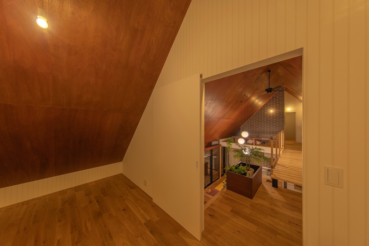 そこで2階から1階、軒下空間まで連続する大きな屋根をかけ光と風の通り道をつくりました。