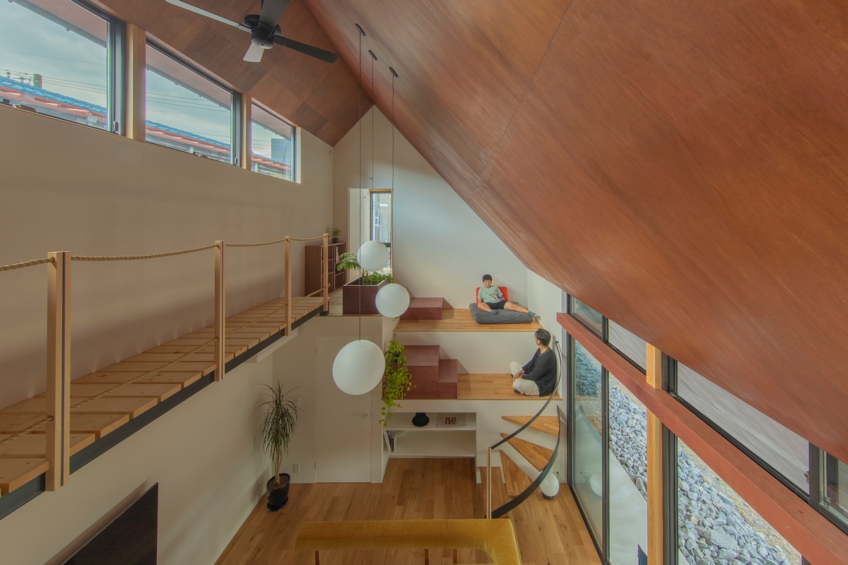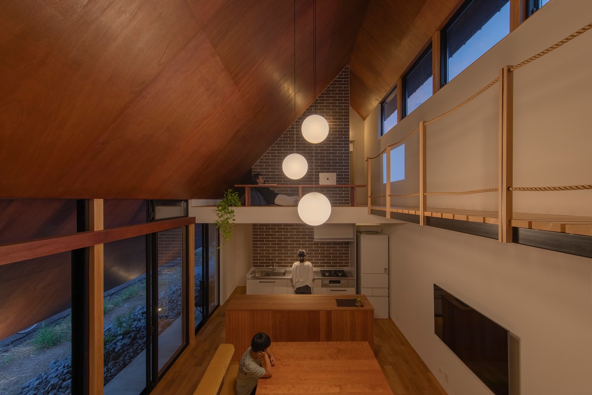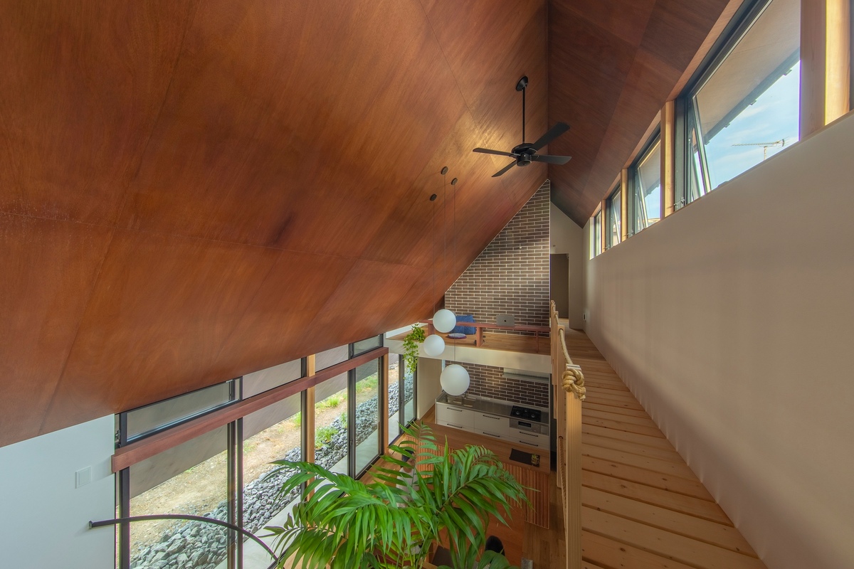 家族を包む大きな屋根が光と風、広がりそして安心感を提供してくれる住まいです。