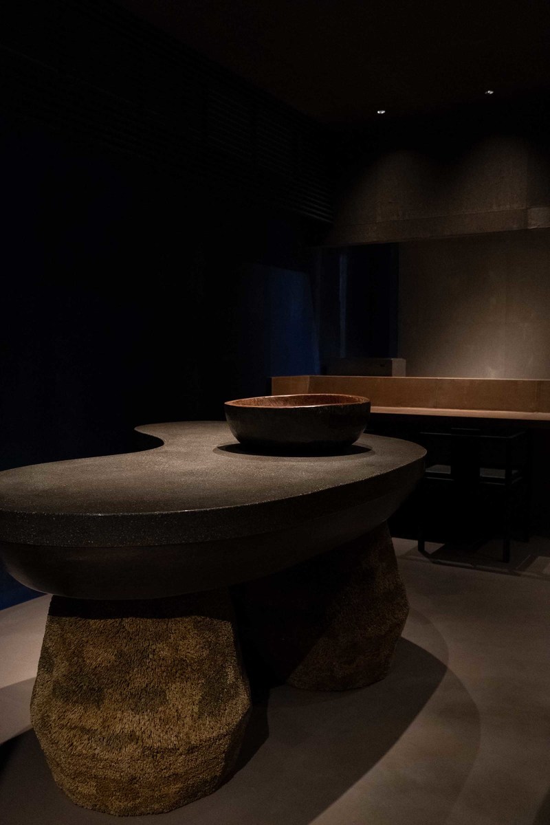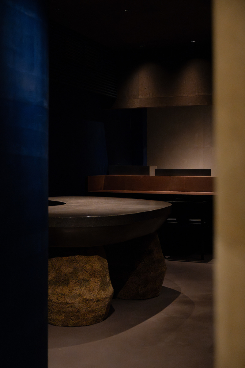 最高の蕎麦を提供するためにはぜひ体験していただきたいことがあり、新しい空間には蕎麦打ちパフォーマンスをするための舞台がつくりたい、と設計を始める段階で店主から提案があった。