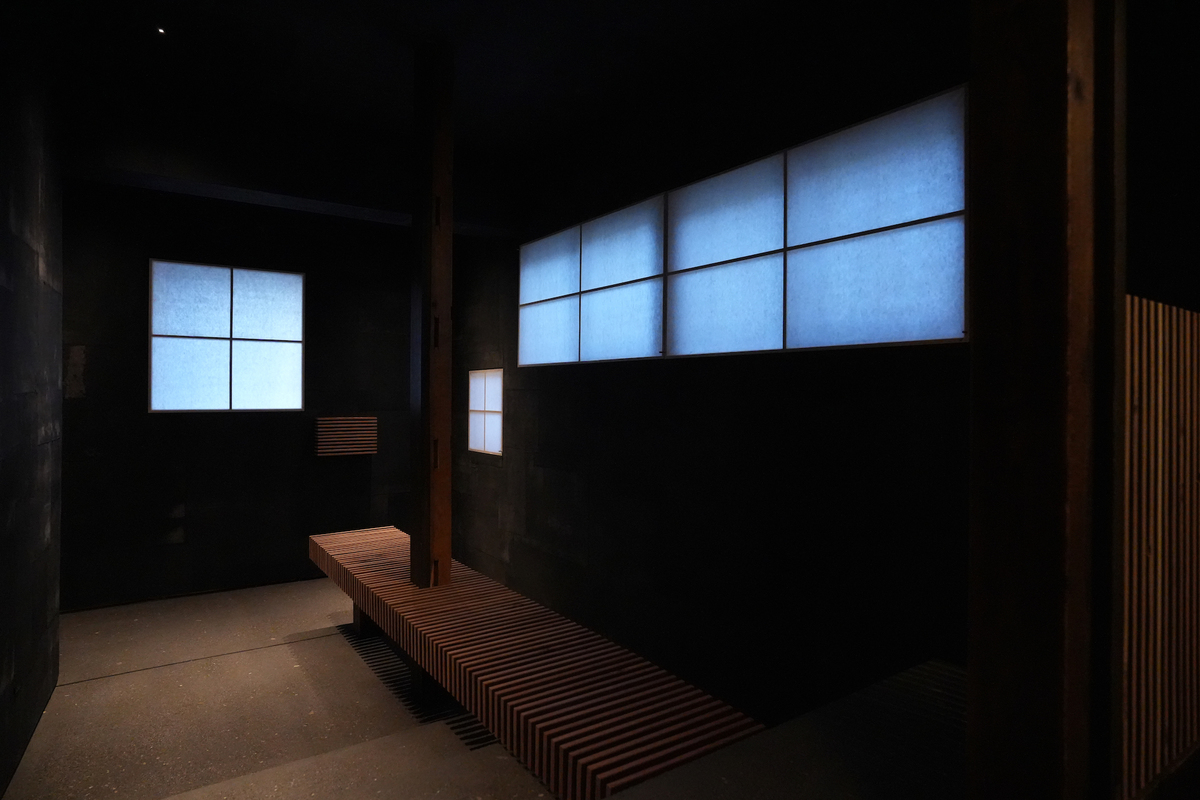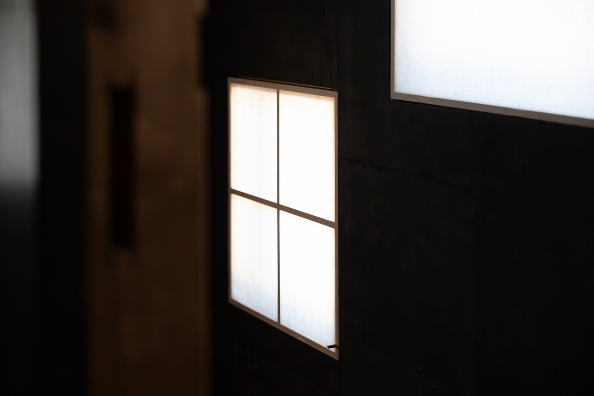 元々あった開口部に障子を嵌め込み、家家の灯が並んでいるかのように配置した。広重の鞠子宿の浮世絵には丁子屋の店先に縁