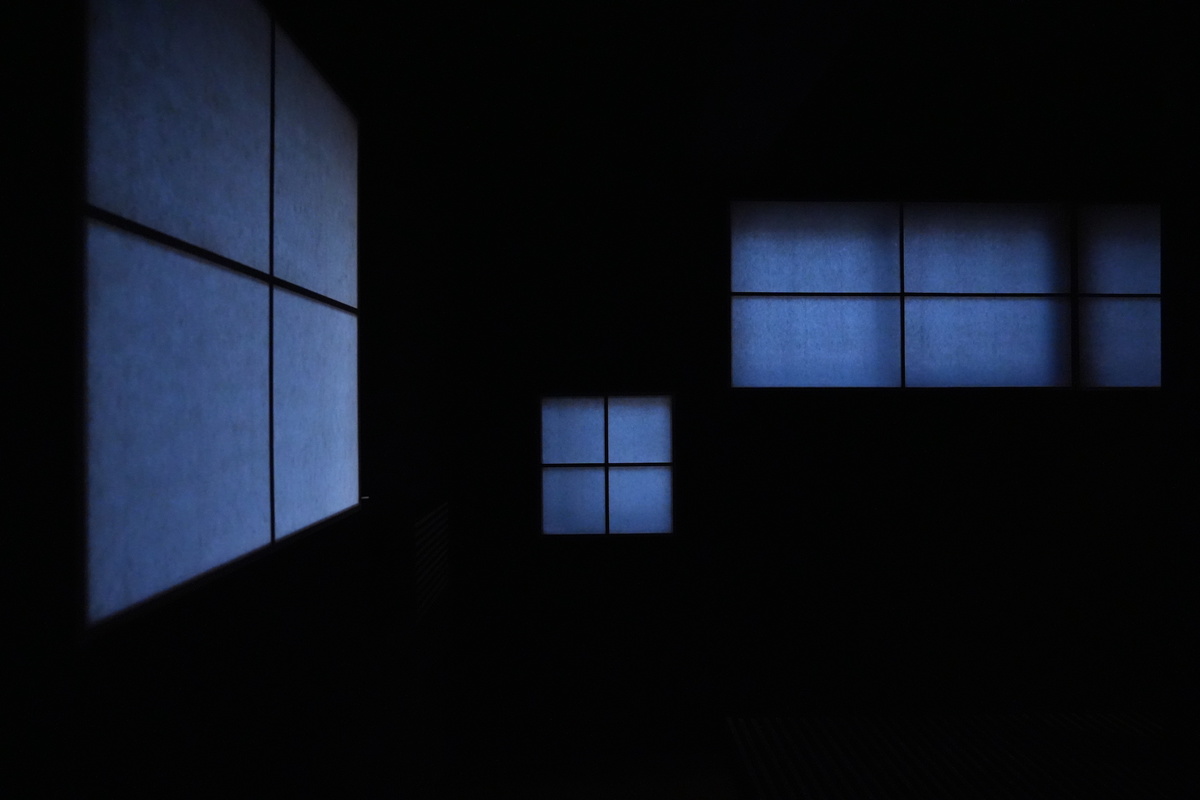 障子越しの自然光は、時間と共に変化して、夕暮れ時には浮世絵の青を感じさせる色に染まる。