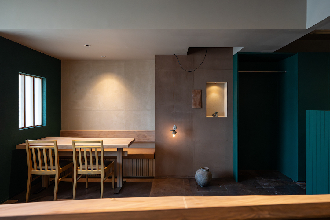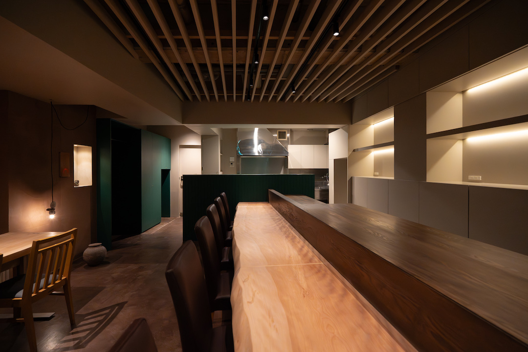 ワンルームの空間にカウンター席とテーブル席が同居しながら、居場所のあり方の違いでどちらの場も座って食事したい魅力を持たせたかった。