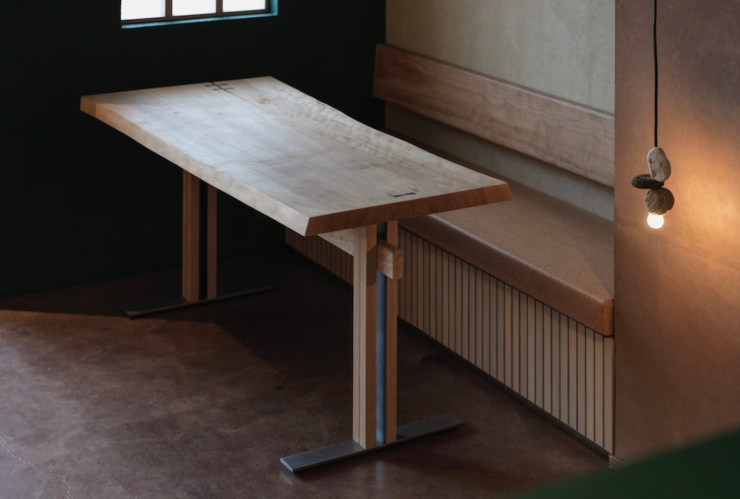 テーブル席周辺はさまざまな素材が混ざり合う交点。