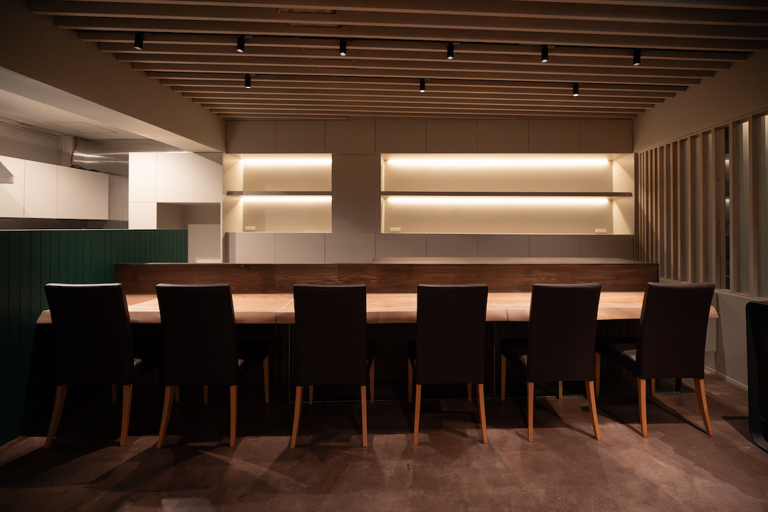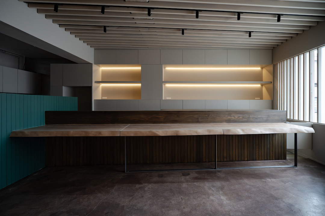 こうしてカウンターは 68 ミリの厚さを確保しつつ、新たな空間の顔となるべく店内中央に鎮座している。