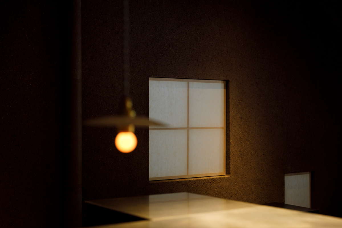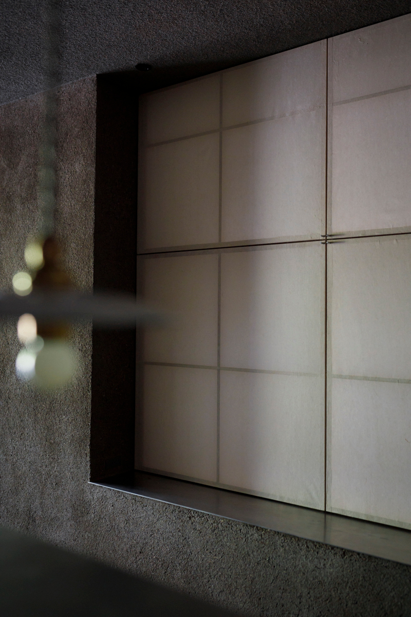 元の店舗の状態が様々な仕様の開口部が混ざり合った店内であったため、必要なサイズに開口部を絞り、太鼓貼りの障子を自然光のスクリーンとして機能するように嵌め込んだ。