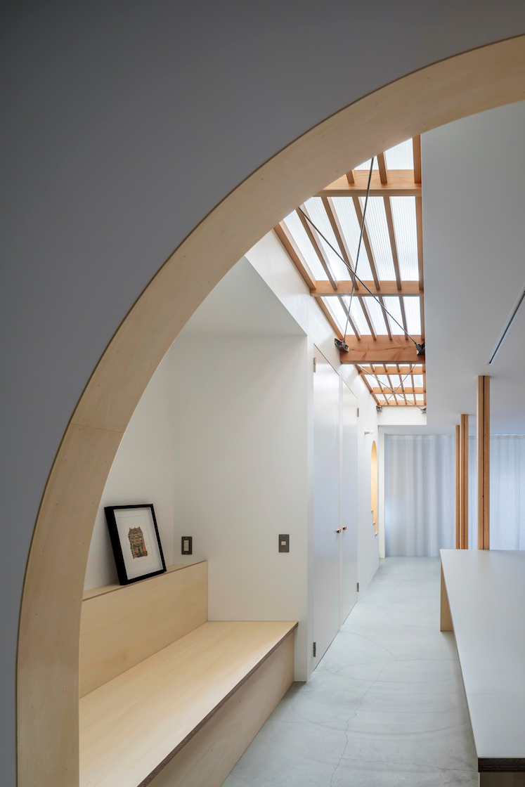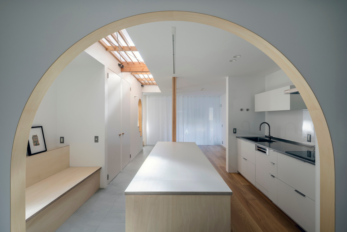 光と風の届く拠り所のあるワンルーム空間を、日々時々の営みに合わせて編集しながら住みこなしていく、光を編む家。そんな懐の深い住まいが実現した。