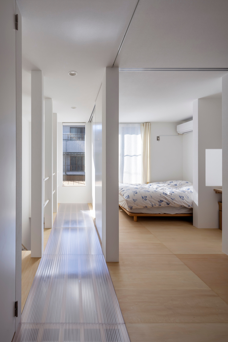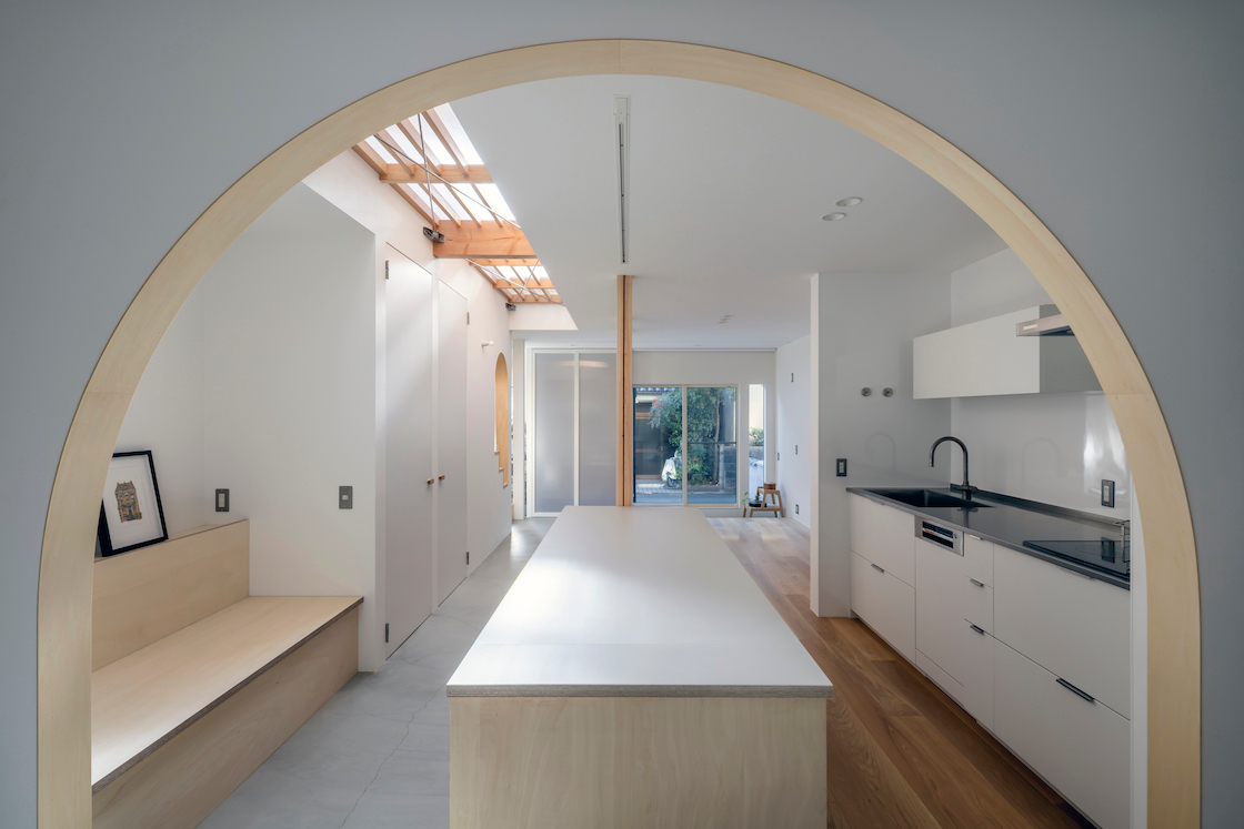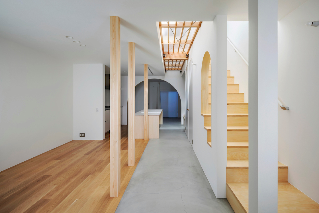 採光が期待できるのは建物南側の道路面のみという条件であったが、それ故にクライアントは理想として、多くの時間を過ごす1階にも日光が降り注ぐことを願っていた。