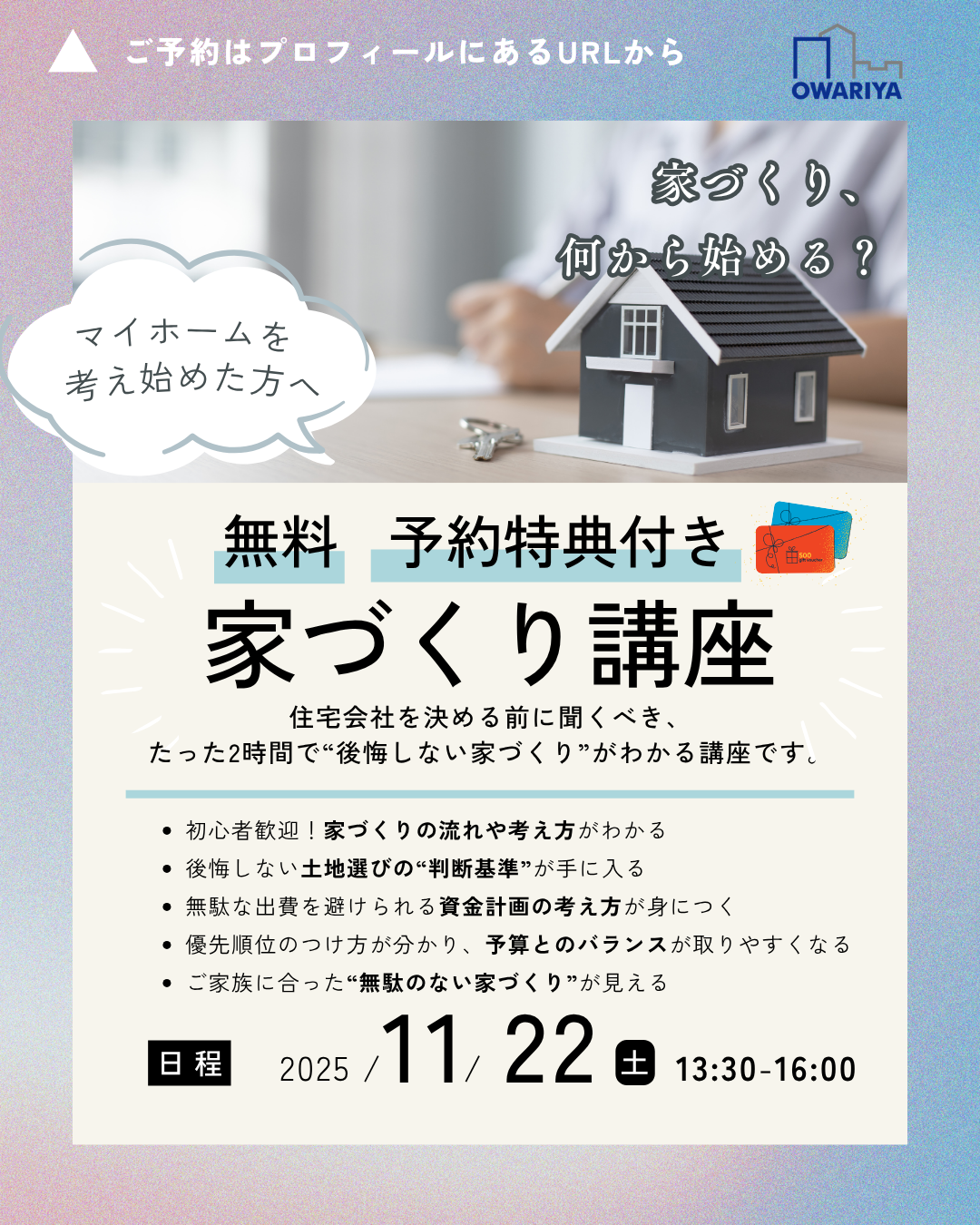 今、家づくりを考えられている方、将来家を建てたい方、必見です。