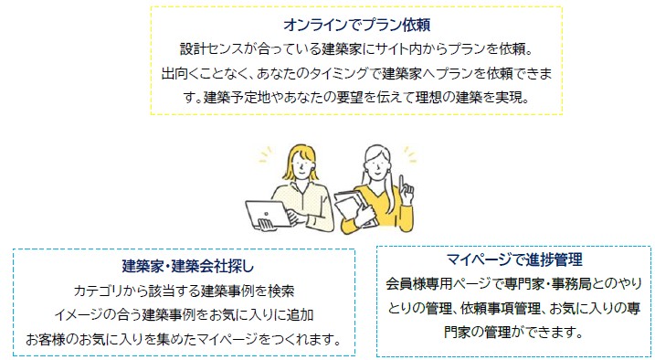 出向くことなく、お客様のタイミングでお気に入りの建築家へプランを依頼